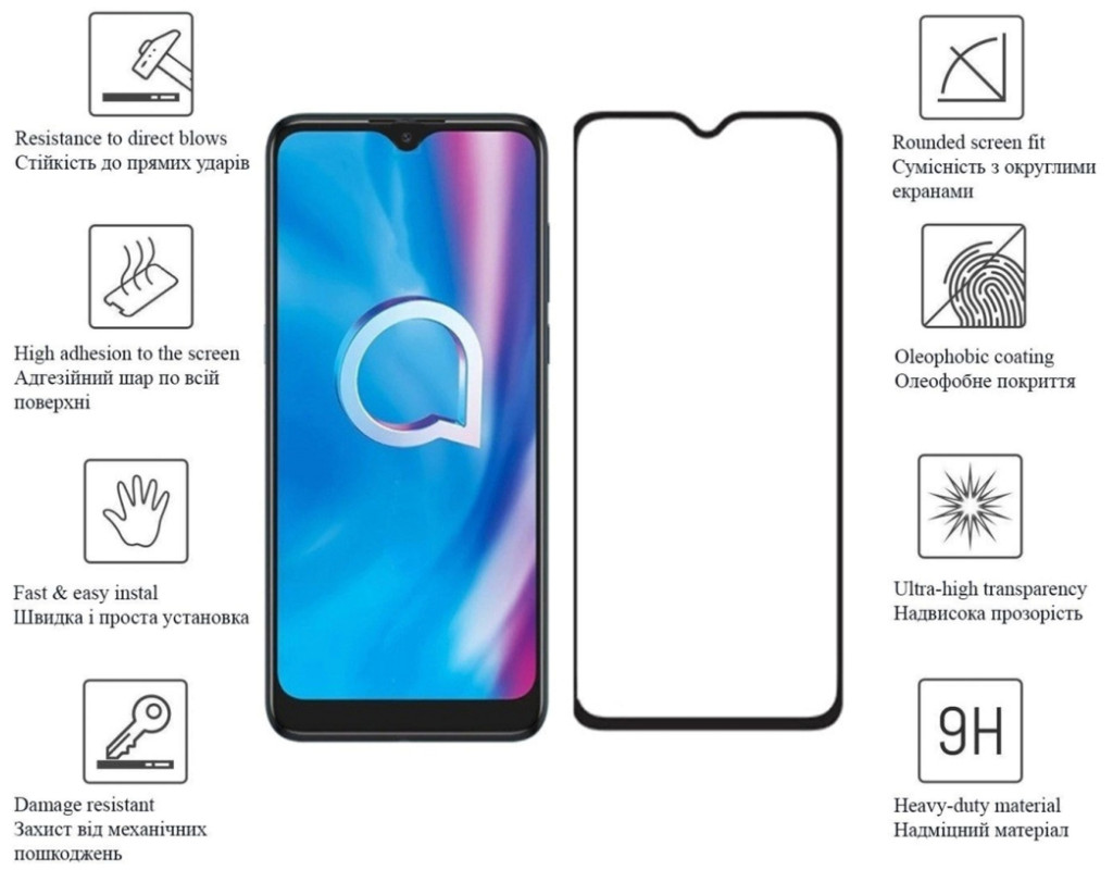Призначення - для телефону, Вид покриття - глянсове, Сумісність з моделями - Alcatel 1SE, Особливості - міцність: 9 Н, Кількість в упаковці - 1 шт