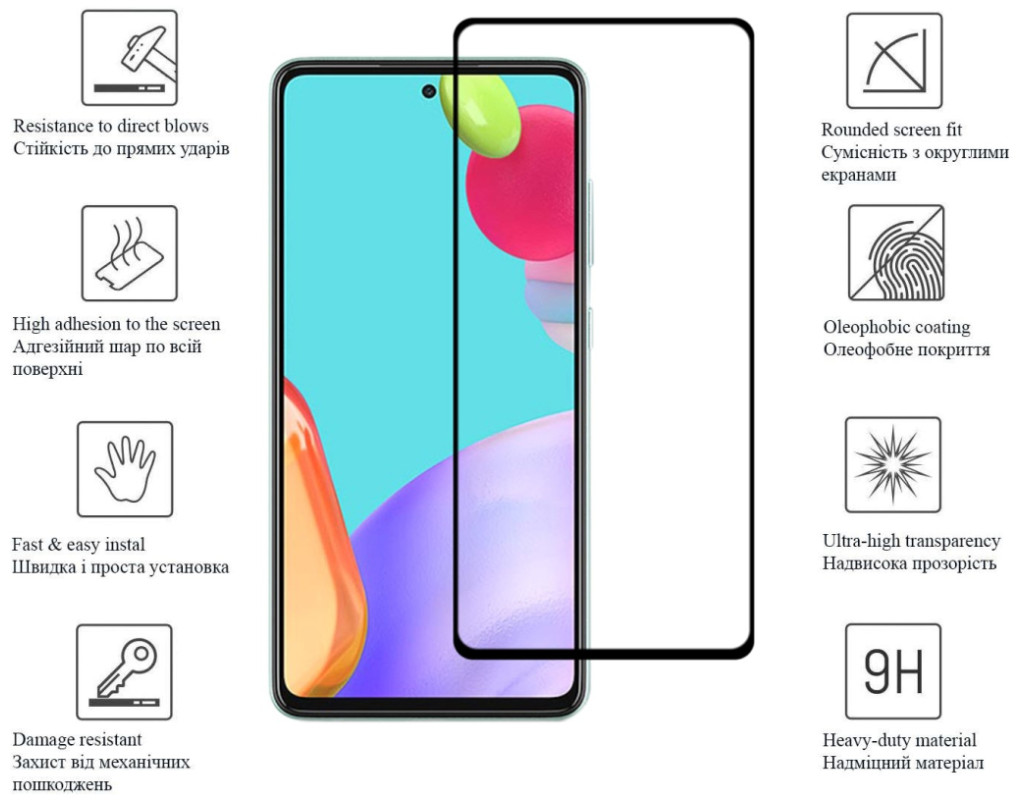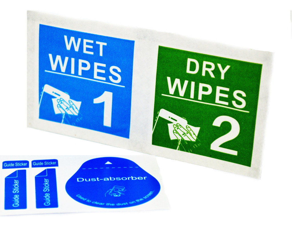 1. Переконайтесь, що скло підходить під розміри дисплея вашого девайса. 2. Протріть дисплей пристрою спиртовою серветкою, яка йде в комплекті. 3. Після використання спиртової серветки, дочекайтеся висихання дисплея пристрою й протріть його серветкою з мікрофібри. 4. Не використовуйте для очищення дисплея рушник із дрібними ворсинками або вату. 5. Обережно відклейте захисний шар скла й акуратно покладіть скло на екран телефона. 6. Не торкайтеся клейкої частини скла, щоб не залишати слідів. 7. Якщо під склом помічено пил, обережно відклейте та повторно очищуйте дисплей. 8. Після того, як ви переконалися, що скло лягло рівно на екран телефона, акуратно притисніть його, пройдіться окремо пальцями з боків скла, придавлюючи його до екрана. 9. Будьте уважні, щоб краї скла не виходили за межі дисплея. Це може спричинити потрапляння під нього бруду й повітря. Комплектація: