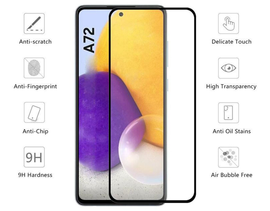 • Панель навколо екрана залита кольором, завдяки чому наклеєне скло практично не відрізнити від стандартної передньої панелі смартфона