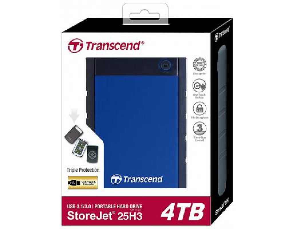 Transcend StoreJet 25H3P Портативний жорсткий диск StoreJet 25H3P має міцний та надійний корпус. Накопичувач дозволить вам легко зберігати та ділитися файлами, де б ви не знаходилися. Два варіанти забарвлення, темно-синій та фіолетовий. Нехай збереження даних буде стильним! Триступеневий захист від ударів StoreJet 25H3P відповідає військовим стандартам США захисту від падіння MIL-STD-810G і гарантує високий рівень безпеки інформації, що зберігається на накопичувачі. Трикомпонентна система захисту від ударів складається з прогумованого силіконового чохла, внутрішнього демпфіруючого підвісу накопичувача та міцного жорсткого корпусу. Портативний жорсткий диск StoreJet 25H3P має роз'єм USB Type-A, який витримує до 10 тисяч циклів з'єднань-відключень, гарантуючи надійний захист ваших файлів. Оснащений інтерфейсом USB 3.1 Gen 1, StoreJet 25H3P має неймовірно високу швидкість роботи, демонструючи швидкість передачі даних до 5 Гб/с. StoreJet 25H3 підходить для пристроїв під керуванням ОС Mac та Windows. Максимальна ємність накопичувача в 4 ТБ дозволяє зберігати фотографії та відео у високій якості, а також велику кількість документів. Велика ємність та відмінна сумісність роблять накопичувач ідеальним рішенням для зберігання ваших файлів! StoreJet 25H3P підтримує функцію автоматичного резервного копіювання за одним натисканням кнопки. За допомогою цієї ж кнопки користувач може вимкнути та знову під'єднати жорсткий диск до комп'ютера без його фізичного від'єднання від роз'єму. *Функція працює лише за наявності встановленого пакета Transcend Elite. Пристрої зберігання Transcend мають ексклюзивні функції безпеки та блокування накопичувача. За допомогою програмного забезпечення Transcend Elite ви можете захистити свої дані відповідним високим стандартам безпеки. |