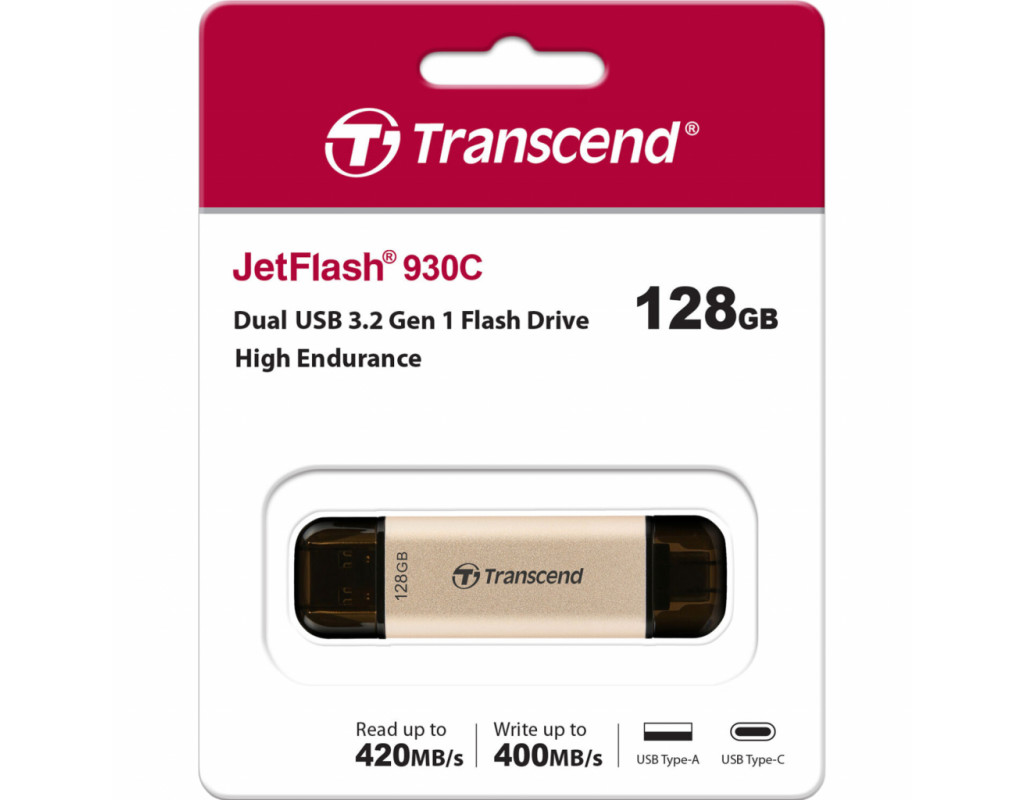USB флеш накопичувач Transcend 128GB JetFlash 930 Gold-Black USB 3.2/Type-C (TS128GJF930C)