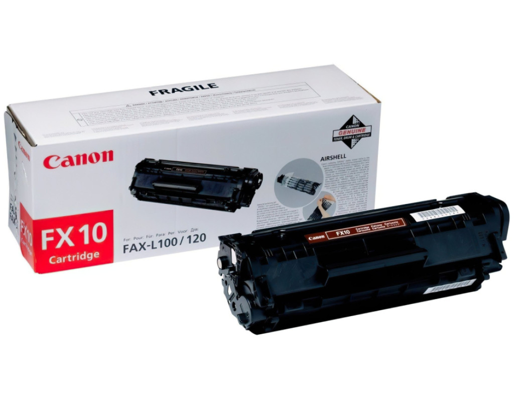 | Картридж CANON FX-10 Ресурс: 2000 стр. при 5% заповненні сторінки Витрата чорнила залежить від того, наскільки сторінка заповнена. Стандартний текст (не жирний, не підкреслений, без малюнків) дає наближено 5% заповнення. Це стандартна характеристика заповнення тонером поверхні паперу, і норми витрати тонера (ресурс картриджа) наводяться саме по ній. Зазначені вище орієнтовні значення наведені для довідки і можуть істотно відрізнятися для різних моделей пристроїв друку. Сумісні моделі: i-SENSYS FAX-L100, i-SENSYS FAX-L120, i-SENSYS FAX-L140, i-SENSYS FAX-L160 |