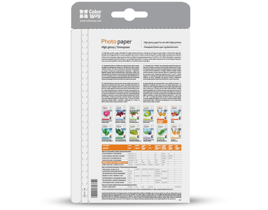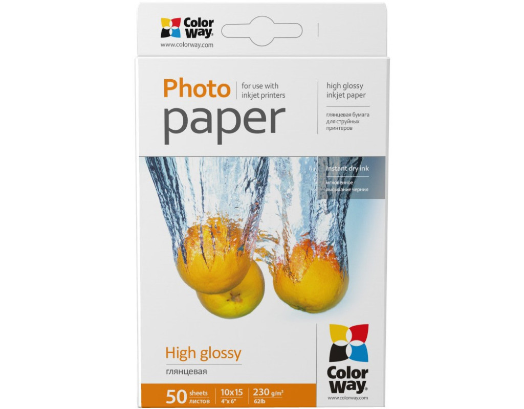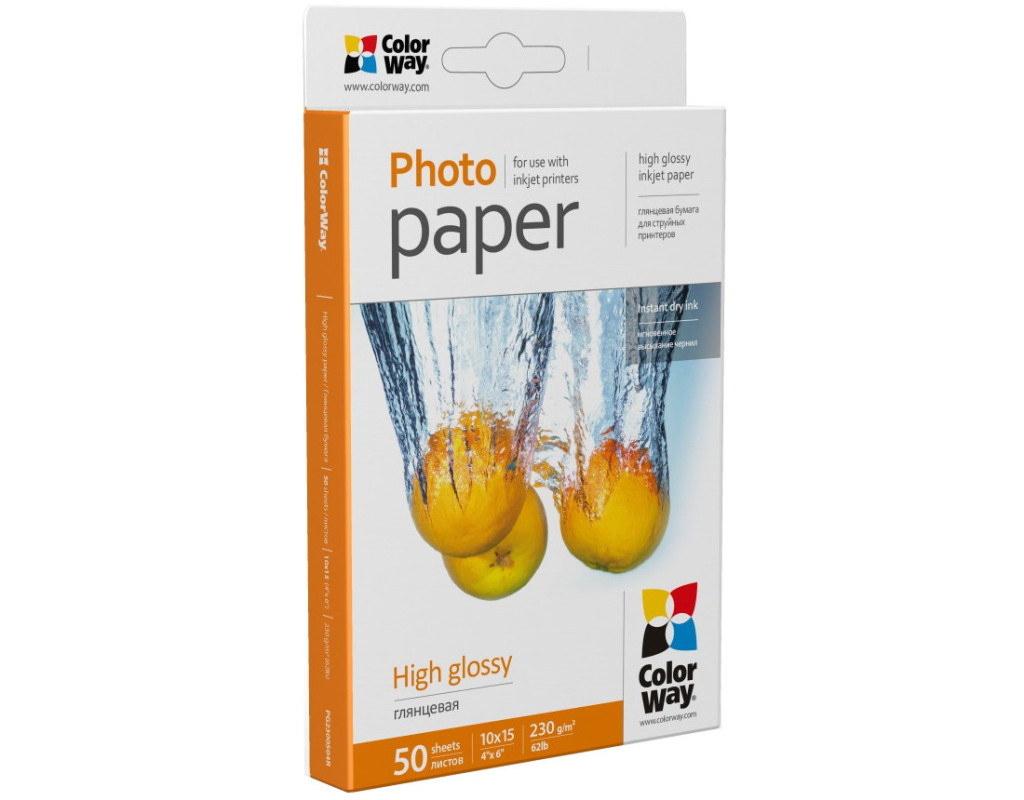 Глянцевий папір ColorWay® для струменевого друку. Має гладку, глянцеву вологозахищену поверхню. Миттєво вбирає водорозчинні чорнила. При друку пігментним чорнилом рекомендовано просушувати відбиток щоб запобігти змазуванню з поверхні. Ідеально передає яскраві, насичені кольори з безліччю відтінків. Зберігати в сухому місці в стороні від сонячного світла. Температура зберігання від 5°С до 25°С. Термін придатності 5 років від дати виробництва. Дата виробництва вказана на упаковці. Не містить шкідливих для здоров'я речовин. Надруковані знімки рекомендовано зберігати в альбомах або в рамках під склом. Ця модель паперу призначена тільки для друку на струменевому принтері та персонального використання. |