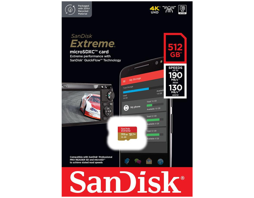 | Карта пам'яті SanDisk 512GB microSD класу 10 UHS-I U3 V30 Extreme (SDSQXAV-512G-GN6MN) — це оптимальне рішення для сучасних технологій із великими вимогами до швидкодії. З вражаючим об’ємом 512 ГБ, ця картка забезпечує простір для зберігання великої кількості високоякісних фото, 4K-відео та інших важливих даних. Оперативність роботи підтримується завдяки класу швидкості UHS-I U3 та Class 10, що робить цю карту незамінною для професійних фотографів та відеооператорів. Швидкість читання до 190 МБ/с дозволяє миттєво передавати дані, значно економлячи ваш час, а швидкість запису до 130 МБ/с забезпечує стабільну та надійну роботу навіть у найінтенсивніших умовах. Ця модель ідеально підходить для смартфонів на базі Android, екшн-камер та дронів, роблячи ваші пригоди яскравішими та більш насиченими. Використовуйте карту з пристроєм для читання SanDisk Professional PRO-READER SD та microSD (продається окремо) для досягнення максимального потенціалу швидкості. Оберіть SanDisk Extreme для найвищої якості та надійності, необхідної у швидкозмінному цифровому світі. |