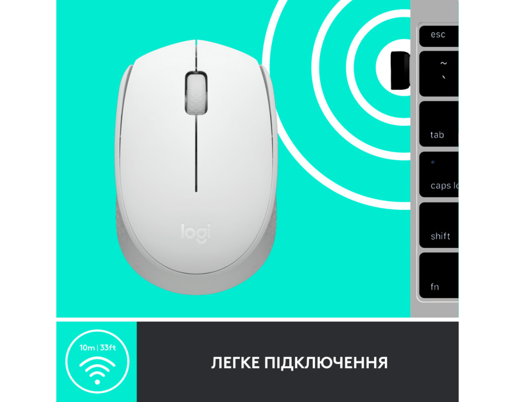 Бездротова миша Logitech M171 поєднує в собі зручність бездротового під'єднання й надійність дротового з'єднання. Завдяки використанню вдосконаленої бездротової технології зв'язку на частоті 2.4 ГГц від Logitech діапазон її дії становить 10 метрів. Ця доступна за ціною миша може працювати до 12 місяців від однієї батареї типу AA. Налаштувати її дуже легко — просто вставте мініатюрний бездротовий приймач в USB-слот. Миша M171 не потребує з'єднання й встановлення програмного забезпечення. Сумісна з операційними системами Windows, Mac і Chrome. Час роботи батареї USB-приймач, який не потребує від'єднання після завершення роботи |