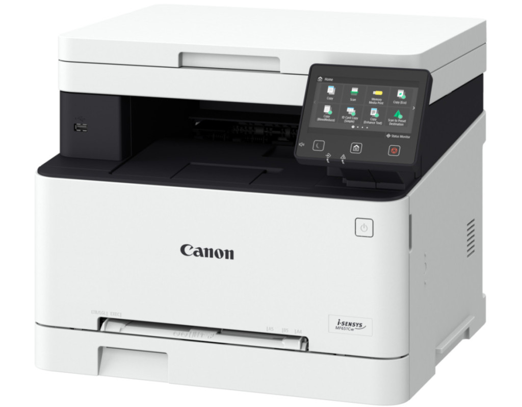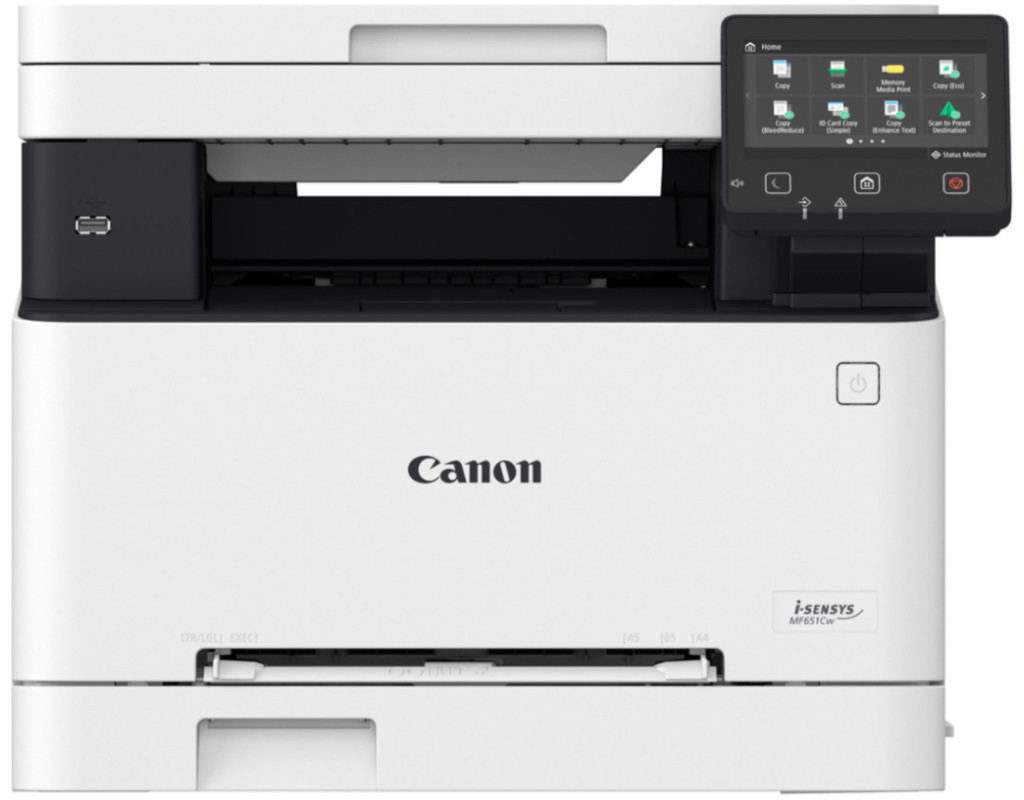 i-SENSYS MF651CW — лазерний кольоровий БФП від компанії Canon. Він забезпечує оптимальну продуктивність друку, копіювання та сканування із прямим підключенням до хмарних служб (Dropbox, GoogleDrive, OneDrive). Підключення до мобільних пристроїв за допомогою програми Canon PRINT Business, AirPrint (Apple) і Mopria (Android) дозволяє друкувати з телефону, де б ви не були. Налаштовуйте робочі процеси за допомогою бібліотеки програм, що одним дотиком дозволяє виконувати такі завдання, як-от друк збережених форм, сканування в електронну пошту та копіювання документів. Беззаперечна якість гарантована роздільною здатністю друку, яка складає 1200 x 1200 точок на дюйм. Лазерний кольоровий БФП оснащений сенсорним екраном, що дозволяє оперативно керувати необхідними функціями друку. Головні переваги пристрою: - можливість бездротового підключення мережею Wi-Fi; - інтуїтивно зрозуміле управління з РК-дисплеєм; - функція безпеки захищає пристрій від злому та вірусних загроз відразу після запуску, а захист PIN-кодом обмежує доступ до конфіденційних документів. Дизайн пристрою досить привабливий та сучасний. Корпус виконаний у білому кольорі із використанням чорних деталей. Зручне керування функціями забезпечує екран управління. |