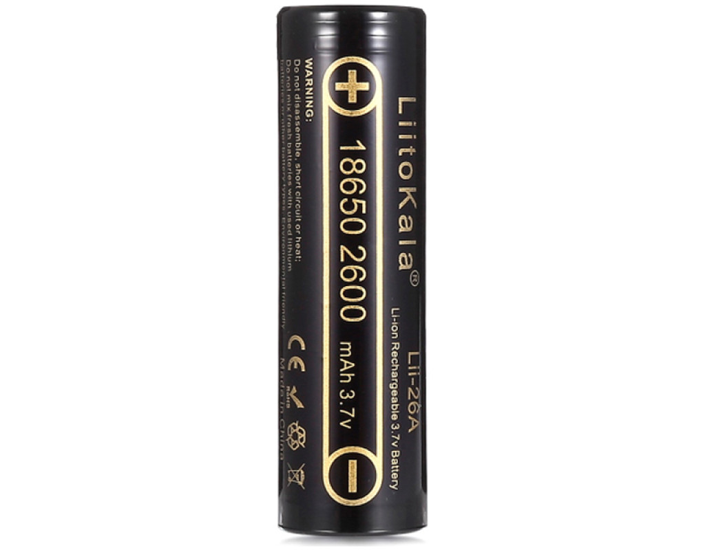 Акумулятор 18650 2600mAh Li-Ion, (2450-2650mah), 3.7V (2.75-4.2V), Blac Liitokala (Lii-26A)
