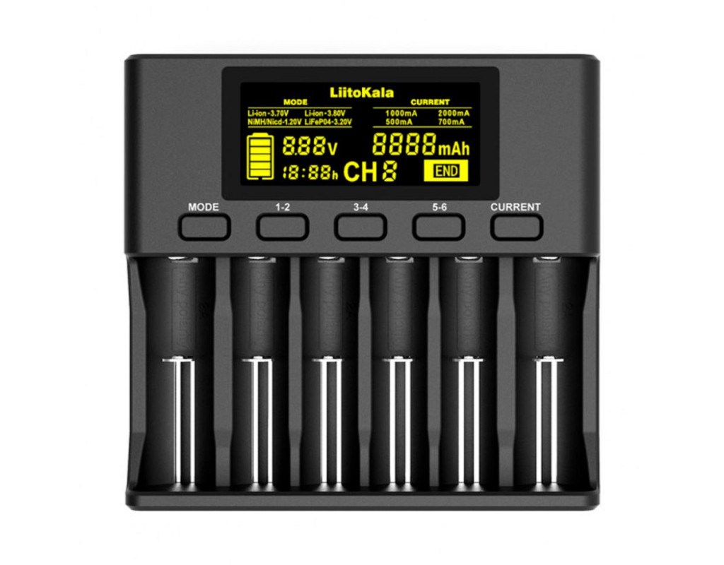 Зарядний пристрій для акумуляторів Liitokala 6 Slots, LCD дисплей, Li-ion/Ni-MH/Ni-Cd/AA/ААA/AAAA/С (Lii-S6)
