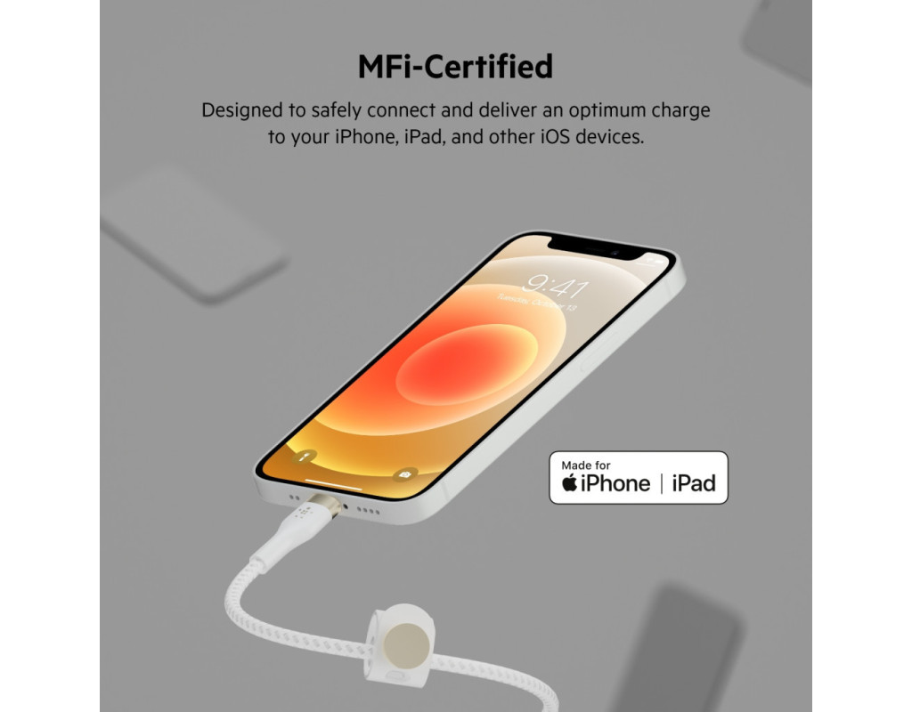 Силіконові кабелі BELKIN створені для того, щоб витримувати щоденне навантаження і забезпечували тривалу міцність, яка у 25 разів вища, ніж у звичайних кабелів. Поставляється з ремінцем і магнітною кнопкою для клейкої металевої пластини, так що ви можете легко зберігати зарядний кабель у будь-якому місці. Інтерфейси Кабельна основа виконана із сатинованого алюмінію для додаткової міцності та стилю.