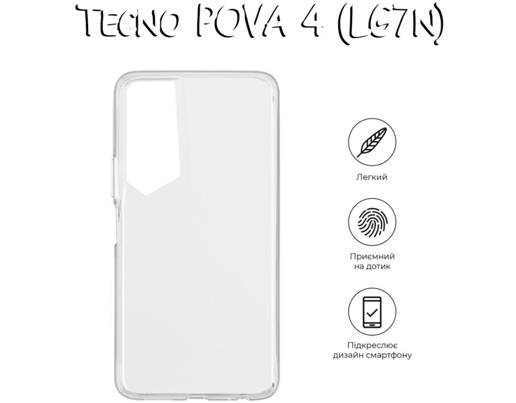 сумісність з моделями - Tecno POVA 4, Тип чохла для телефону - накладка, Призначення - модельний, Колір - прозорий