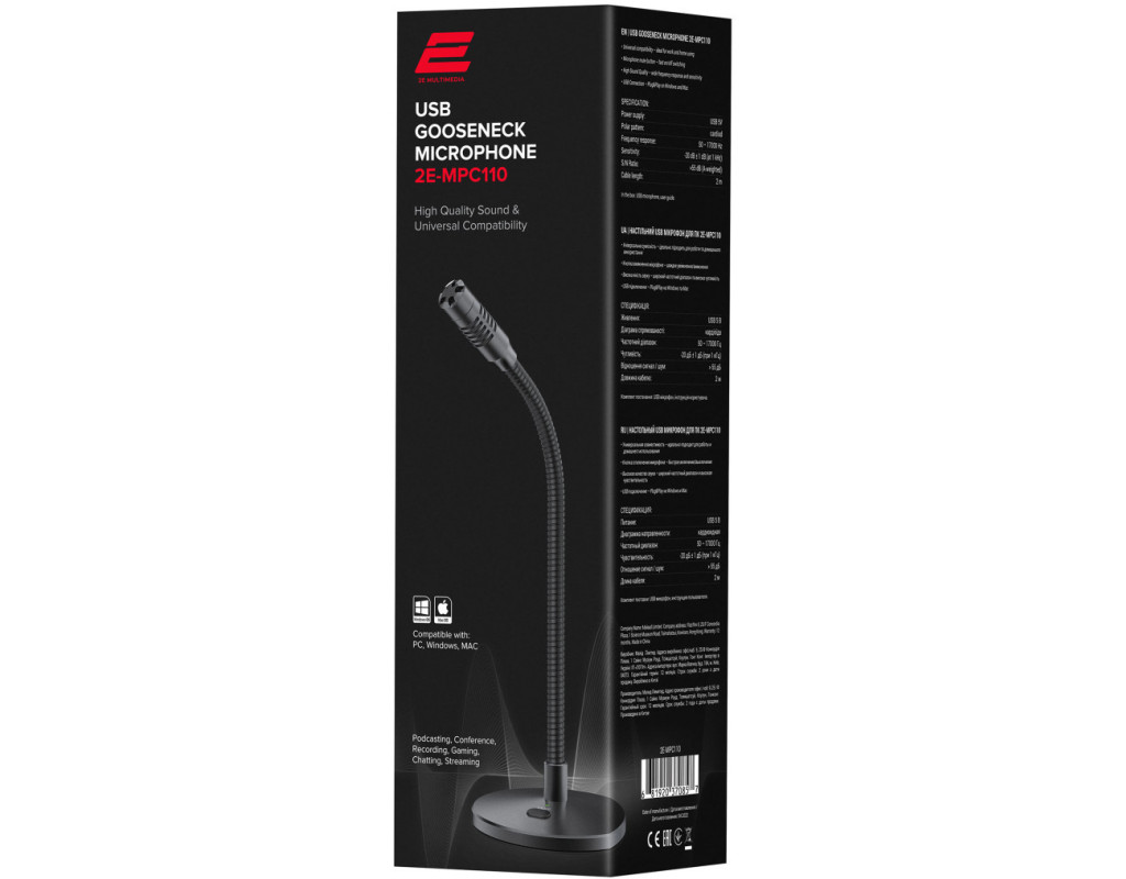 | Мікрофон 2Е MPC110 доволі універсальний, тож стане в пригоді як вдома для спілкування із друзями чи розваг, так і в офісі під час проведення онлайн-конференцій. Модель є вдалим рішенням для запису голосу чи інших звуків завдяки кардіоїдній направленості, широкому частотному діапазону, високій чутливості та легкому підключенню через USB. |