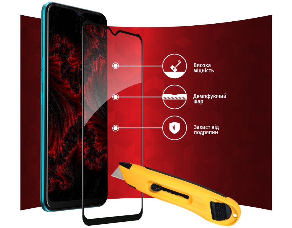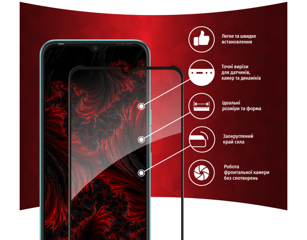 • Рівень міцності 9H — мінімізує ризик пошкодження передньої панелі мобільного пристрою під час повсякденного використання