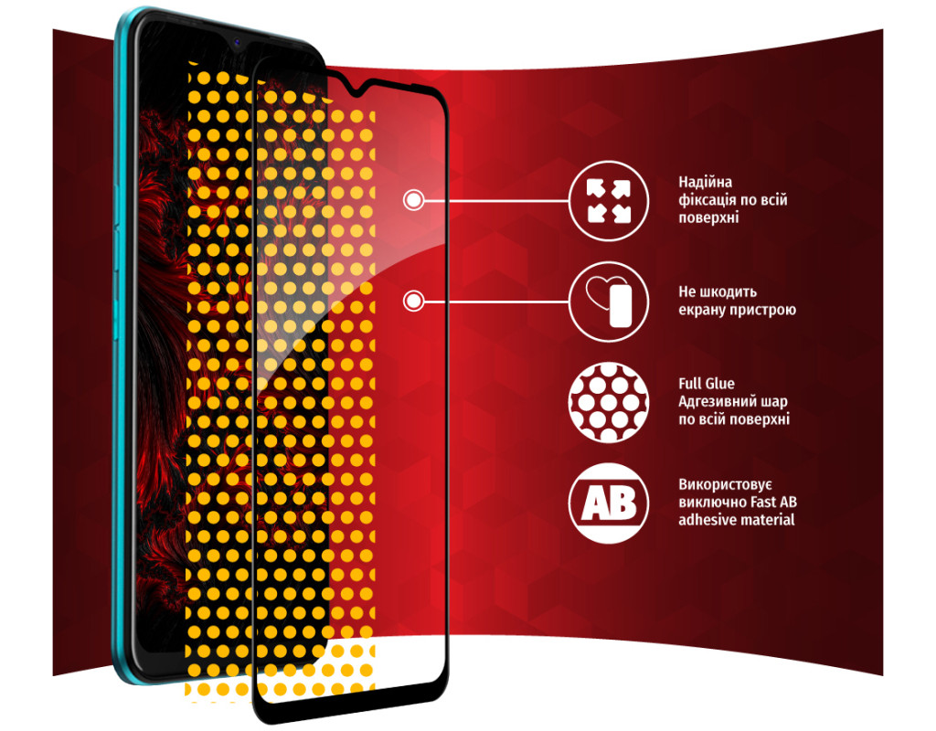 Захисне скло — один із найкращих засобів для захисту не тільки екрана, але й усієї передньої панелі мобільного пристрою, від краю до краю. Воно повністю повторює розміри й форму передньої панелі смартфонів навіть з округленими краями. Краї скла повторюють колір передньої панелі, тож скло майже невидиме для ока. Забезпечує максимальний захист від пилу та вологи, не залишаючи помітних прозорів, повітряних бульбашок або слідів клейового шару на екрані. Скло надійно оберігає від ударів або падінь. Ключові особливості: - Клейовий шар нанесений на всьому склі — завдяки цьому, забезпечує надійну та сильну фіксацію всього скла, а не лише його країв. У разі потреби таке скло можна легко зняти без ризику пошкодити екран або його покриття