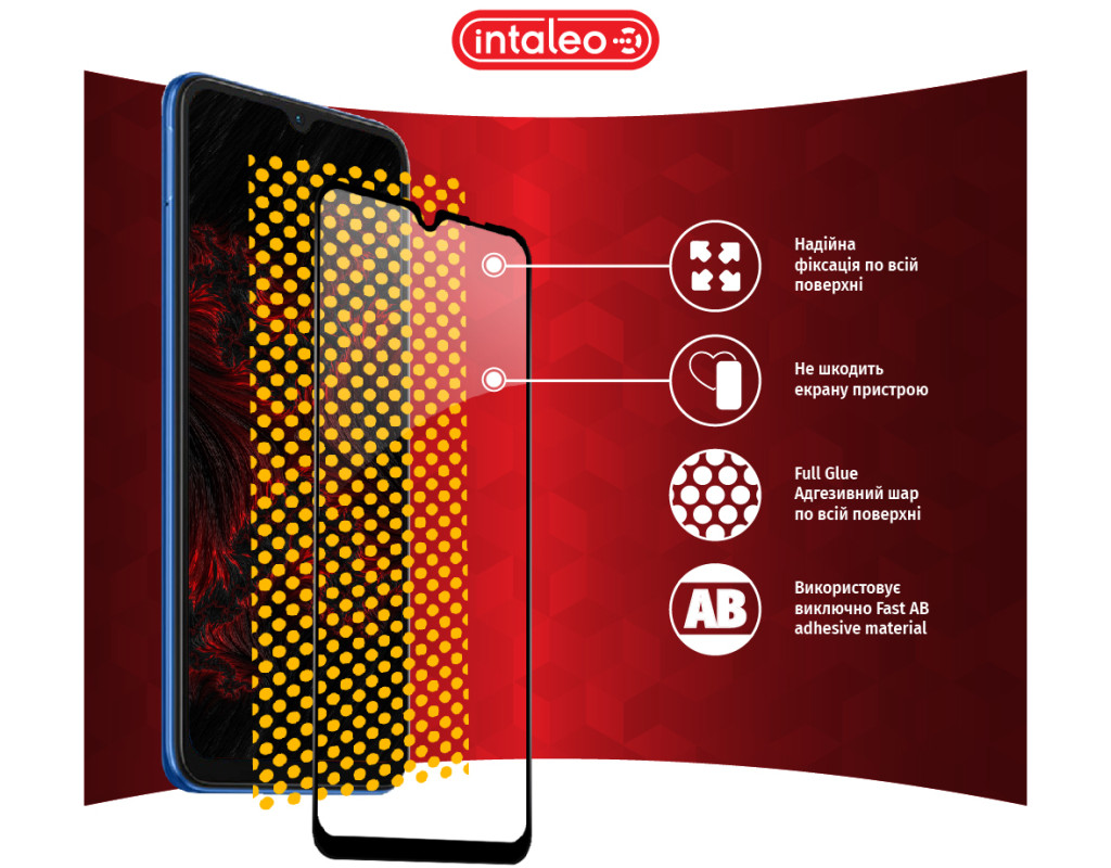 • Клейовий шар нанесений на всьому склі. Завдяки цьому, забезпечує надійну та сильну фіксацію всього скла, а не лише його країв. У разі потреби таке скло можна легко зняти без ризику пошкодити екран або його покриття.