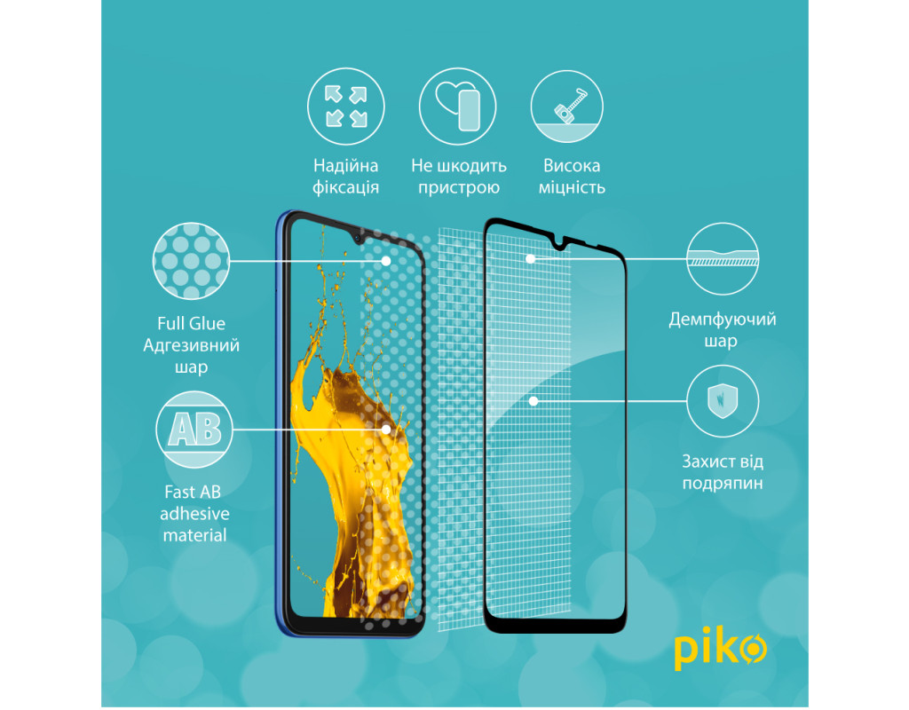 Захисне загартоване скло — один із найкращих засобів захисту не тільки екрана, але й усієї передньої панелі мобільного пристрою, від краю до краю. Воно повністю повторює розміри та форму передньої панелі смартфонів навіть із закругленими краями. Краї скла повторюють колір передньої панелі, тому скло майже невидиме для ока. Скло надійно оберігає від ударів або падінь. Ключові особливості: