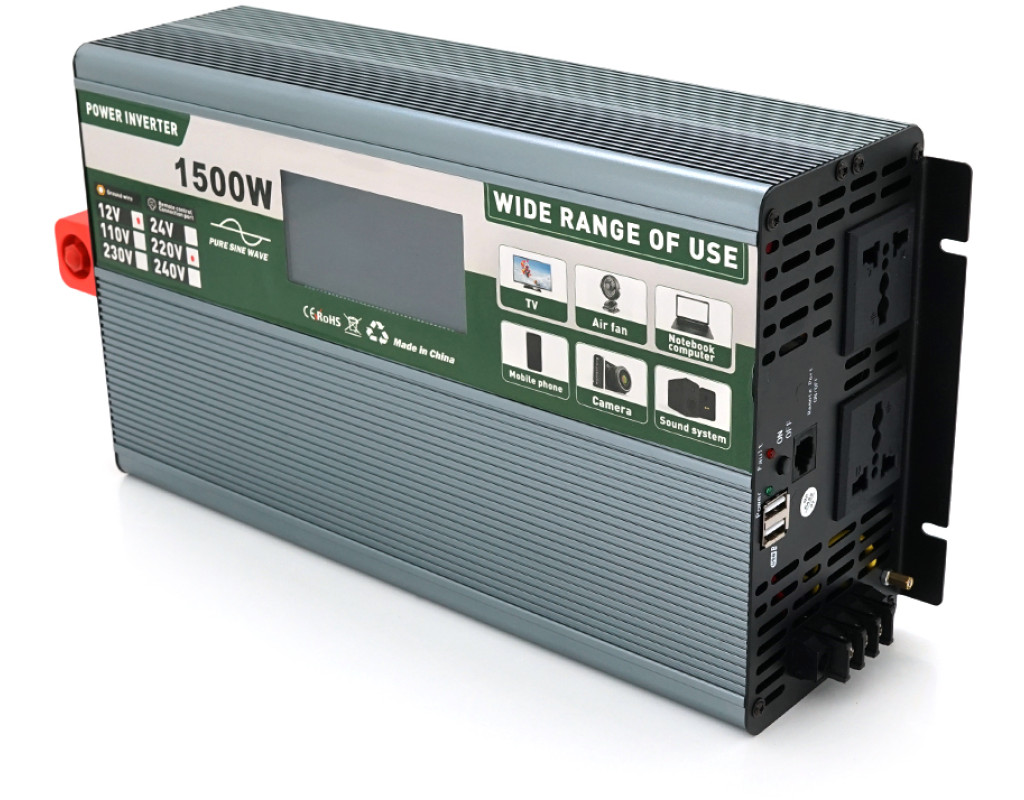 | Інвертор напруги Demuda DMDPSW-1500W, 12V / 220V, 1500W з правильною синусоїдою, 2 універсальні розетки, 2 USB, Rj 45, клемні дроти, Q6 |