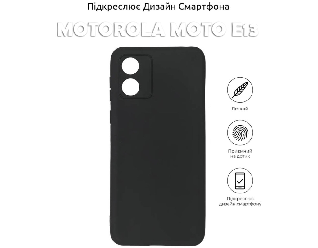 сумісність з моделями - Motorola E13, Тип чохла для телефону - накладка, Призначення - модельний, Матеріал - силікон, Колір - чорний