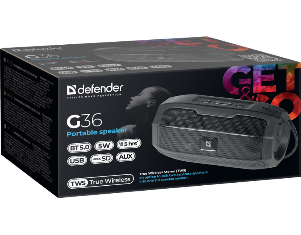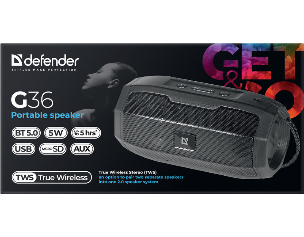 | Акустична система Defender G36 5Вт FM/microSD/USB Black (65036) — це ідеальних вибір для тих, хто цінує якість звуку, портативність і потужність, укладені в елегантний та стильний корпус. Ця система є справжнім технологічним шедевром завдяки передовій підтримці Bluetooth 5.0, яка забезпечує надзвичайно швидке з'єднання, більший радіус дії та оптимізоване споживання енергії. Використовуючи True Wireless Stereo (TWS) технологію, ви зможете з'єднати дві окремі колонки у потужну 2.0 систему, що дозволяє повністю зануритися у світ стереозвуку. Це ідеальне рішення для вечірок на відкритому повітрі або приємного відпочинку вдома. Вбудований MP3-плеєр підтримає ваш музичний настрій завдяки можливості відтворення з USB флеш-накопичувачів, карт пам'яті SD або micro SD. Це додає універсальності та зручності у використанні, адже улюблені треки завжди будуть поруч. FM-тюнер перетворює колонку на повноцінний радіоприймач, що дозволяє насолоджуватися улюбленими радіопередачами та новинними блоками. Завдяки AUX аудіовходу розширюється функціональність системи: підключайте комп'ютер, плеєр чи мобільний телефон і використовуйте колонку як потужний динамік для будь-якого джерела звуку. Функція Hands free, що має вбудований мікрофон, надає можливість відповідати на дзвінки без безпосереднього доступу до телефону. Спілкуйтеся з комфортом, подібно до ввімкненого режиму гучного зв'язку. Загальна вихідна потужність системи складає 5 Вт, що, у поєднанні з потужними динаміками, подарує вам чисте та насичене звучання. Матеріал корпусу з міцного пластику та гуми робить колонку стійкою до незначних ударів і додає стильному дизайну надійності. Ця акустична система оснащена акумулятором, що дозволяє використовувати колонку у мобільному режимі, забезпечуючи вас зарядженим настроєм на улюблених подорожах чи прогулянках. Бездоганне поєднання функціональності та естетики робить Defender G36 вашим надійним партнером у світі музичних відкриттів. |