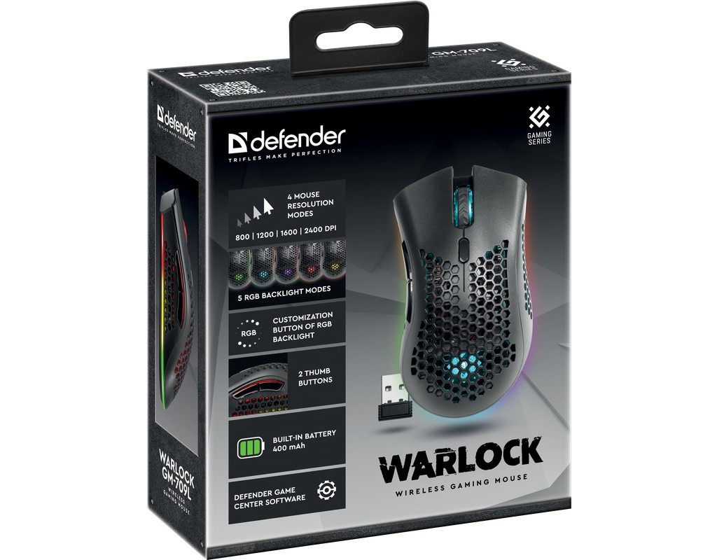 | Мишка Defender Warlock GM-709L RGB Wireless Black (52709) — це ідеальний вибір для сучасних геймерів, які цінують якість та унікальність. Ця геймерська мишка вирізняється своїм оригінальним дизайном та ергономічністю, що гарантує комфорт навіть під час тривалих сеансів улюблених ігор. Бездротове підключення за допомогою USB адаптера на частоті 2.4 ГГц забезпечує стабільний зв'язок без затримок, а це важливо для тих моментів, коли кожна секунда на вагу золота. Мишка оснащена оптичним сенсором PixArt P3212 із максимальною роздільною здатністю 2400 dpi, що дозволяє точно контролювати рухи. Ви зможете вибрати один з чотирьох режимів роздільної здатності, що оптимально підходять для різних ігор та завдань. Справжньою родзинкою цієї моделі є RGB підсвічування, яке має п'ять режимів і переливається кольорами, створюючи неперевершену атмосферу під час гри. Спеціальна кнопка дозволяє легко змінювати режими підсвічування, надаючи вашому робочому місцю неповторного шарму і стилю. Ще однією перевагою мишки є її перфорований корпус, що зменшує вагу до 110 г, при цьому він залишається міцним та витривалим. Це дозволяє знижувати навантаження на руку та підвищувати комфорт під час геймінгу. Defender Warlock GM-709L оснащена вісьмома кнопками, п'ять з яких є програмованими, даючи можливість підлаштувати її під свої потреби за допомогою програмного забезпечення Defender Game Center. Редактор макросів і можливість емулювати клавіатурні кнопки допоможуть вам досягти переваги над суперниками. Мишка живиться від вбудованого акумулятора ємністю 400 мА*год, котрий забезпечить багатогодинну роботу без потреби частого заряджання. Зарядка здійснюється через USB-кабель, який входить у комплект, а кабель довжиною 0.8 м ідеально підходить для підключення до ПК або ноутбука без зайвих зусиль. Компактні розміри 123 x 72 x 43 мм дозволяють легко транспортувати мишку в рюкзаку або сумці. Її чорний колір додає строгості та елегантності, роблячи її відмінним аксесуаром для будь-якого робочого столу, особливо якщо ви фанат World of Tanks або інших динамічних ігор. У цілому, мишка Defender Warlock GM-709L RGB Wireless Black є втіленням сучасного технологічного підходу до геймінгу, де кожна деталь продумана для забезпечення найвищого рівня зручності та ефективності. Це не просто периферійний пристрій, а й важлива складова вашого успіху в віртуальному світі. |