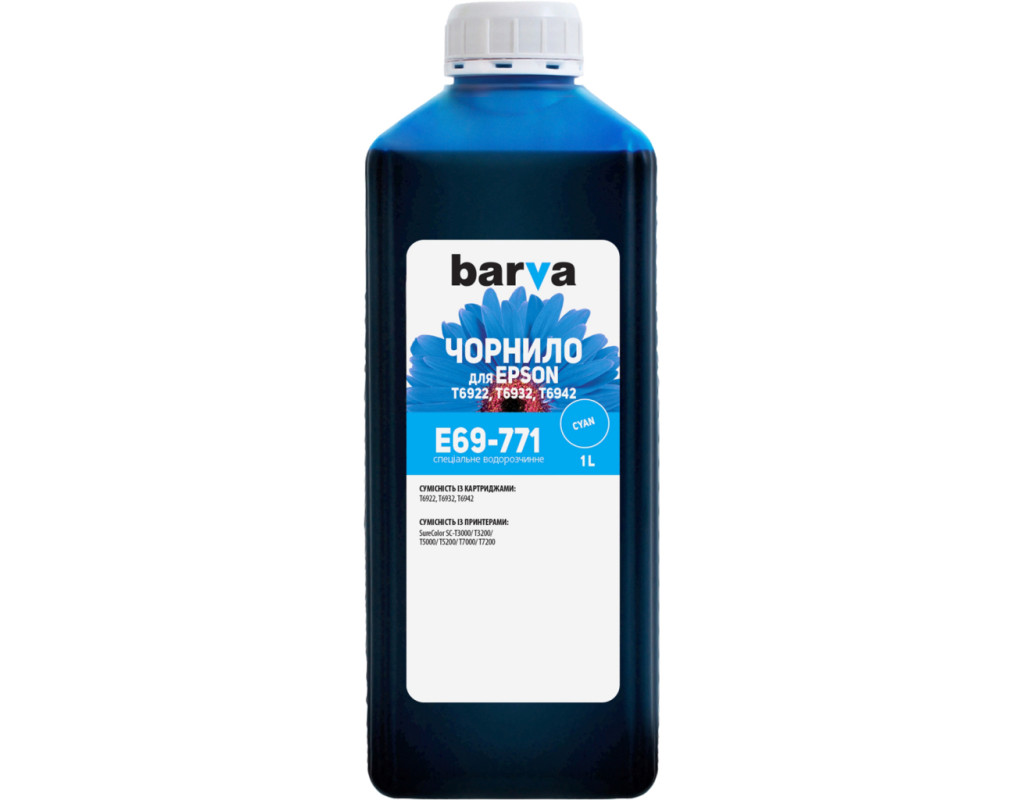 | Сумісне чорнило Barva Epson для заправлення картриджів струменевих принтерів, СБПЧ і ПЗК. Усі чорнила розробляються, тестуються і виробляються в Україні. Забезпечують точне передавання кольору та півтонів на фотографіях під час друку на всіх типах спеціального фотопаперу Barva. Чорнило розфасоване в спеціальні флакони для зручного заправлення. Новий поліетиленовий флакон має спеціальну насадку-носик, що дає змогу легко заправляти ПЗК і контейнери СБПЧ без шприців. Чорнила ТМ Barva повністю сумісні з чорнилами ТМ Patron! Умови зберігання: за температури від 5° до 30 °C. Чорнила Barva — це