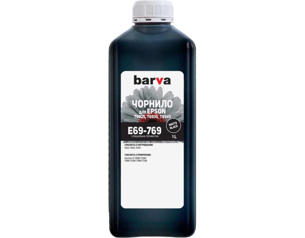 | Сумісне чорнило Barva Epson для заправлення картриджів струменевих принтерів, СБПЧ і ПЗК. Усі чорнила розробляються, тестуються і виробляються в Україні. Забезпечують точне передавання кольору та півтонів на фотографіях під час друку на всіх типах спеціального фотопаперу Barva. Чорнило розфасоване в спеціальні флакони для зручного заправлення. Новий поліетиленовий флакон має спеціальну насадку-носик, що дає змогу легко заправляти ПЗК і контейнери СБПЧ без шприців. Чорнила ТМ Barva повністю сумісні з чорнилами ТМ Patron! Умови зберігання: за температури від 5° до 30 °C. Чорнила Barva — це