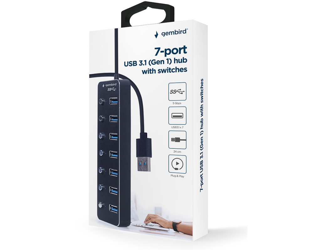 Тип - зовнішній, Інтерфейс підключення - USB 3.1, Вихідні роз'єми - 7 x USB 3.1