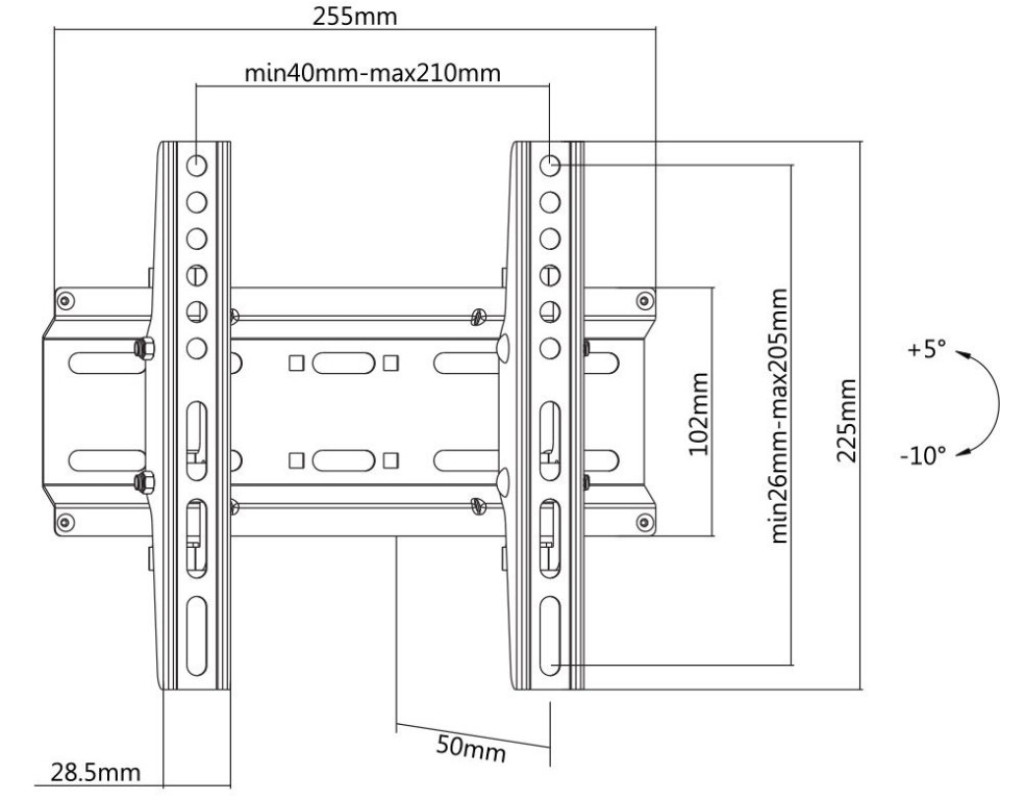 СУЧАСНИЙ І СТИЛЬНИЙ ДИЗАЙН Кронштейн SATELIT 19-49TILT200 відповідає стандарту VESA в діапазоні min 75 x 75, max 200 x 200 і призначене для встановлення на стінах телевізорів або моніторів із розмірами екранів від 19" до 49''. Максимальна вага екрана, здатного комфортно розміститися на цьому кріпленні, може досягати 35 кг. Питання про розміщення телевізора не менш актуальне, ніж сама купівля пристрою. З урахуванням компактності, забезпеченої плоским екраном, панель, все ж, займає чималу площу приміщення, якщо встановлена за допомогою стандартної підставки та таку ж чималу роль відіграє в інтер'єрі. Кронштейн розв'язує не тільки проблему економії простору, але й дає змогу розмістити екран у зручній точці квартири, на будь-якій відстані та висоті. Кронштейн SATELIT 19-49TILT200 є металевою консоллю, що надійно кріпиться до стіни для фіксації телевізора. Похила конструкція кронштейна SATELIT 19-49TILT200 дає змогу глядачеві, змінювати положення ТВ із кутом нахилу в 10° по напряму вгору-вниз. Це особливо зручно та важливо, якщо панель розміщена вище очей і для комфортного перегляду контенту необхідно адаптувати положення екрана. ПАРАМЕТРИ СУМІСНОСТІ З ТЕЛЕВІЗОРОМ Знайти інформацію про те, який стандарт VESA у певній моделі телевізора, можна з технічного паспорта або вручну виміряти ці відстані. Кронштейн SATELIT 19-49TILT200 виготовлений у діапазоні стандарту VESA min 75 x 75, max 200 x 200, що допустимо для 19-49 дюймових діагоналей. Не менш важливим параметром, який обов'язково має бути врахований у підборі кріплення — максимально допустима вага. Кронштейн SATELIT 19-49TILT200 здатний витримати навантаження 35 кг. Ця інформація в обов'язковому порядку прописана в супутній документації до кронштейна. КОМПЛЕКТАЦІЯ |