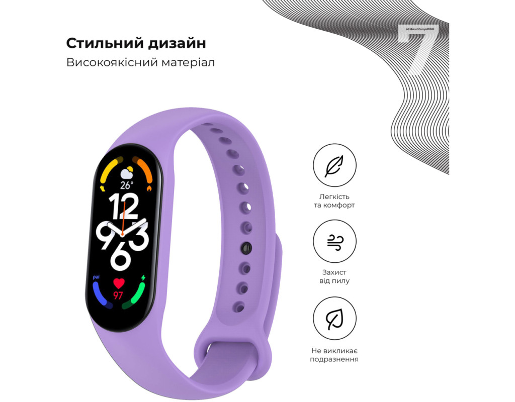 Ремінець до фітнес браслета Armorstandart для Xiaomi Mi Band 7/6/5 New Style Lavender (ARM65666)
