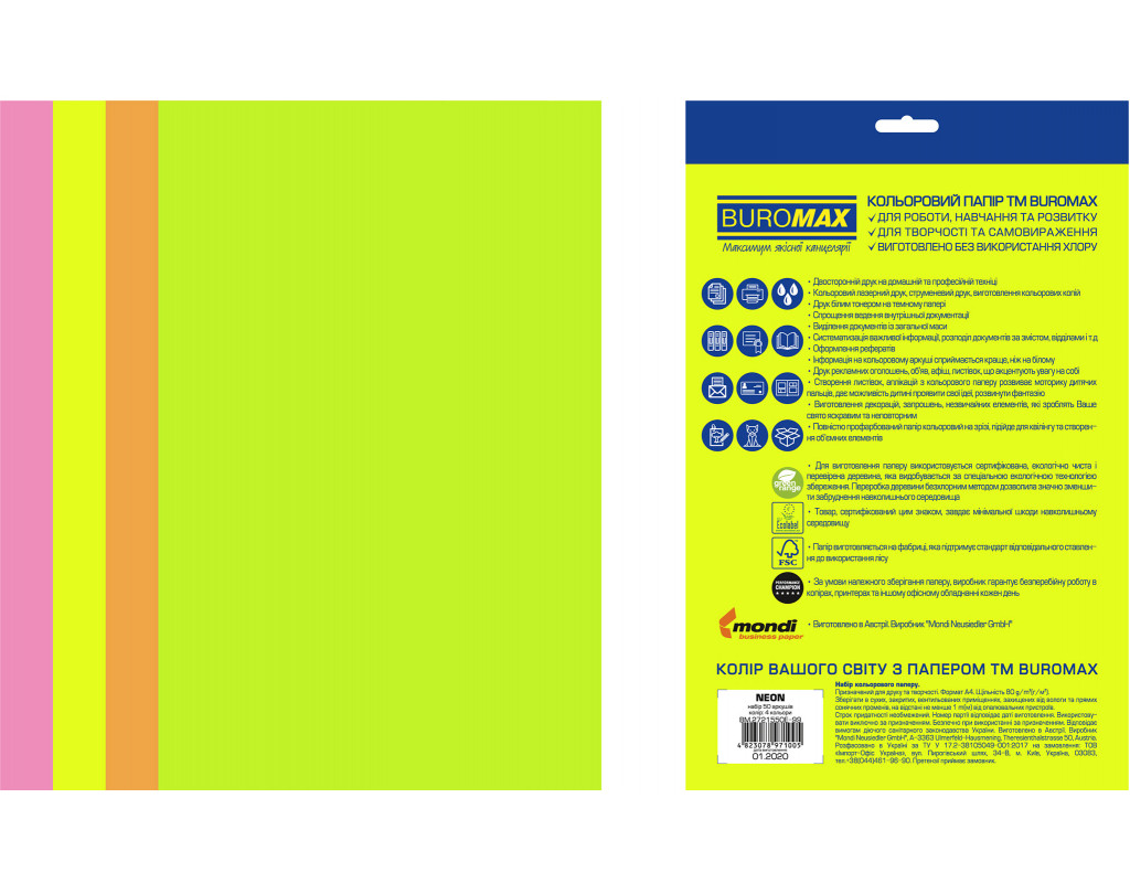 Папір Buromax А4, 80g, NEON, 4colors, 50sh, EUROMAX (BM.2721550E-99)