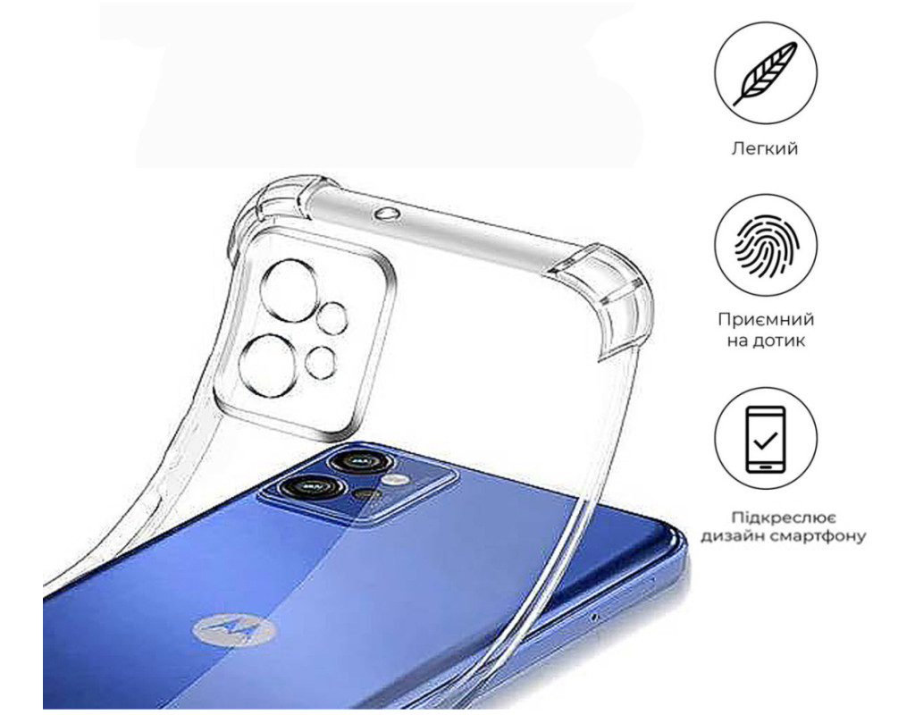 сумісність з моделями - Motorola G32, Тип чохла для телефону - накладка, Призначення - модельний, Колір - прозорий