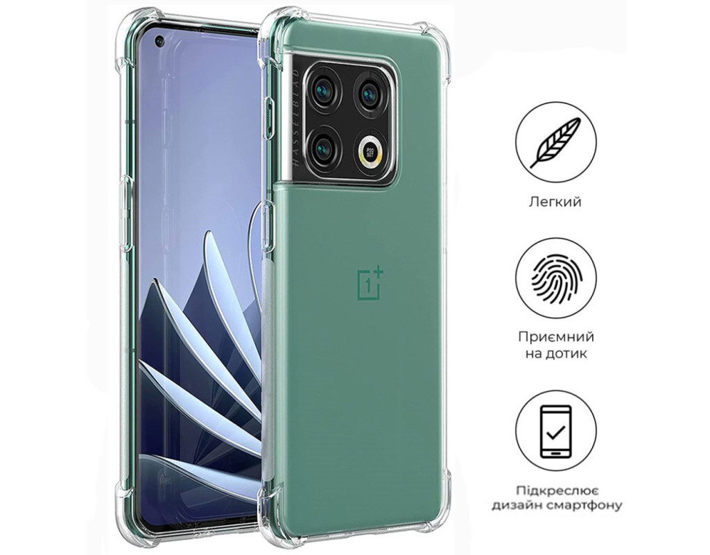 сумісність з моделями - OnePlus 10 Pro, Тип чохла для телефону - накладка, Призначення - модельний, Колір - прозорий