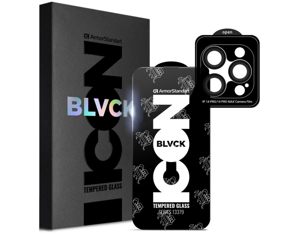 Скло захисне Armorstandart Supreme Plus Black Icon Apple iPhone 14 Pro (ARM68063)