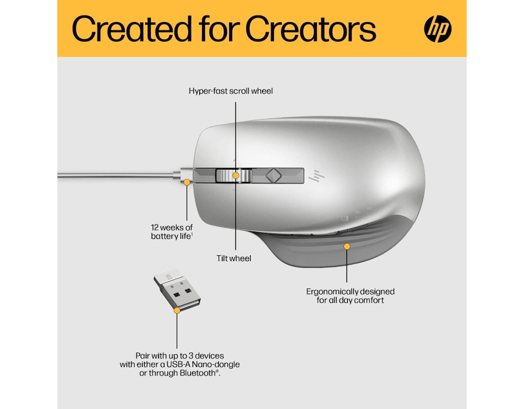 | Мишка HP Creator 930 Wireless Silver (1D0K9AA) - це ідеальний вибір для тих, хто цінує унікальний та оригінальний дизайн, і водночас прагне максимального комфорту та функціональності під час роботи з ноутбуком. Завдяки бездротовому підключенню через Bluetooth або USB адаптер 2.4 ГГц, цей пристрій дозволяє забути про незручності, пов'язані з проводами, і насолоджуватися безперешкодною роботою в будь-якому місці. HP Creator 930 може похвалитися оптичним датчиком з максимальною роздільною здатністю до 4000 dpi, що забезпечує бездоганну точність і швидкість реагування, навіть на самих складних поверхнях. Унікальна можливість роботи на скляних поверхнях робить цю мишку по-справжньому універсальною. Завдяки вбудованій пам'яті ви зможете налаштувати і зберегти свої персоналізовані налаштування і макроси на сімох програмованих кнопках, що значно поліпшить ваш творчий процес. Підвищуйте ефективність, використовуючи надшвидке колесо прокручування з функцією tili-click, яка дозволяє миттєво переходити між режимами прокрутки в залежності від ваших потреб. Ще однією безсумнівною перевагою є можливість підключення до трьох різних пристроїв, що робить зміну обладнання швидкою і безпроблемною. Це особливо зручно для тих, хто одночасно працює на ноутбуці, планшеті або десктопі. Не менш вагомою перевагою є термін служби батареї до 12 тижнів завдяки вбудованому акумулятору, що гарантує вам тривалу і безперебійну роботу без необхідності частої підзарядки. Ергономічний дизайн з розмірами 120,7 х 79 х 49,7 мм і вагою всього 130 г забезпечує комфортне використання навіть під час тривалих сесій. Елегантний сірий колір додає стриманості і стилю, що ідеально підкреслює індивідуальність власника. Мишка HP Creator 930 Wireless Silver (1D0K9AA) - це не просто зручний інструмент, а справжній партнер у реалізації ваших творчих задумів, який поєднує в собі якість, функціональність та стиль. Обираючи її, ви забезпечуєте себе надійним засобом для реалізації будь-яких завдань, незалежно від їх складності та характеру. З HP Creator 930 вам під силу буде все – від повсякденної роботи до створення справжніх шедеврів цифрового мистецтва. |