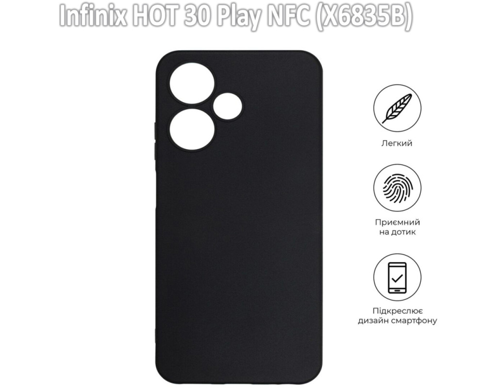 сумісність з моделями - Infinix Hot 30 Play NFC, Тип чохла для телефону - накладка, Призначення - модельний, Колір - чорний