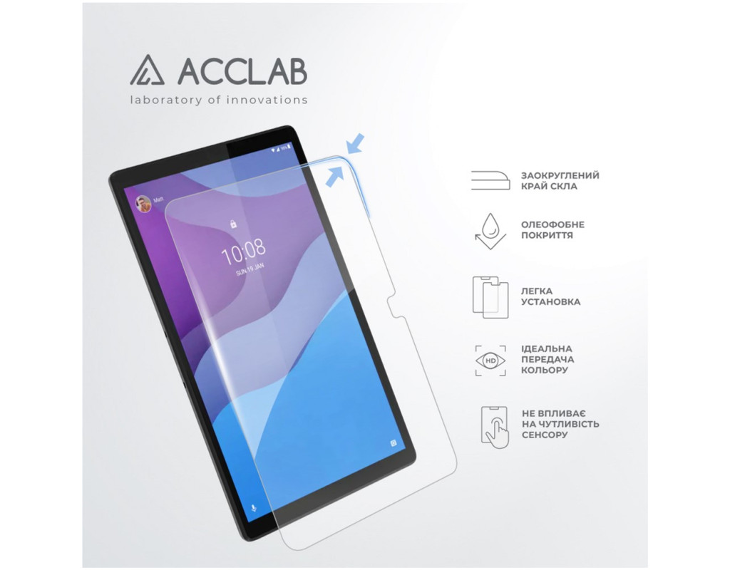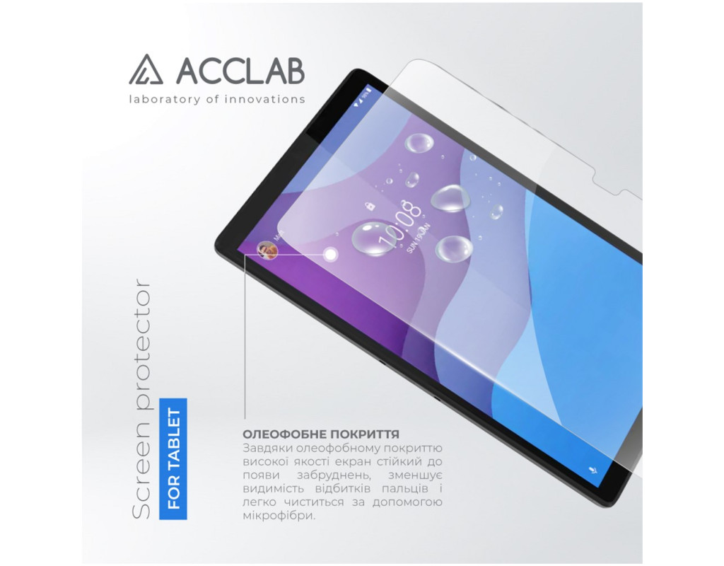 Надміцне, ультратонке й кришталево прозоре захисне скло ACCLAB Full Glue має найвищий рівень міцності — 9H, тому надійно оберігає екран вашого планшета від подряпин та інших механічних пошкоджень, спричинених ударом або падінням. Загартоване скло забезпечує максимальний захист екрану по всій поверхні. Завдяки олеофобному верхньому шару, екран стає стійким до забруднень, відбитків пальців і легко очищується за допомогою мікрофібри. Особливості: