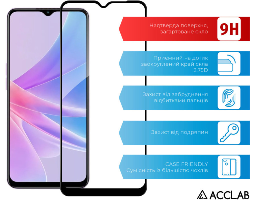 Скло захисне ACCLAB Full Glue Oppo A58 (1283126565144)