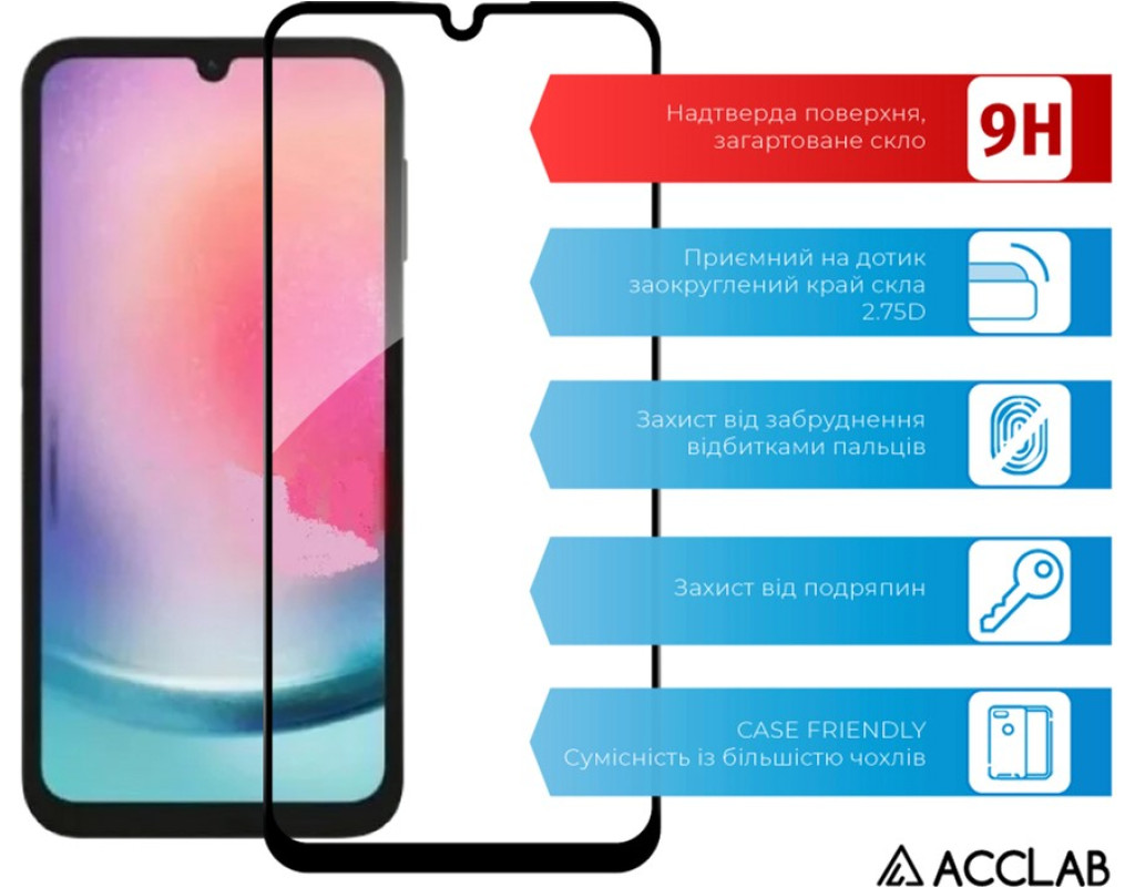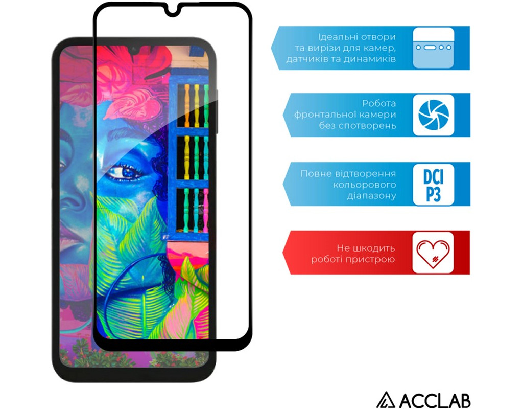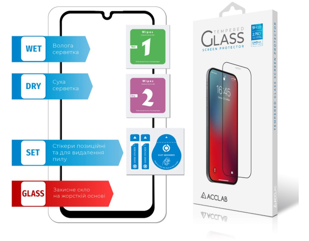 Захисне скло ACCLAB Full Glue це новий неймовірний рівень у захисті дисплеїв смартфонів. У виробництві використовується інноваційне загартоване скло, яке проходить спеціальну обробку для досягнення максимальної гладкості та міцності поверхні рівня 9H, що мінімізує ризик пошкодження передньої панелі мобільного пристрою під час повсякденного використання. Завдяки цьому вдалося досягти ідеальну прозорість захисного покриття без спотворень зображення. Після встановлення даного захисного скла чутливість дисплея ніяк не зміниться. У ньому міститься спеціальний матеріал, що забезпечує найкращий захист від тріщин і подряпин. Верхня частина скла містить доопрацьоване олеофобне і гідрофобне покриття. Під час використання скла це забезпечує максимально природні тактильні відчуття — пальці легко ковзають по поверхні. Зображення відображається з високою чіткістю і природною яскравістю. Задня частина по всій площі покрита клейовим великим клейовим шаром найкращої якості. Вдалося досягти повної відсутності бульбашок під час первинного встановлення. Захисне скло ACCLAB Full Glue автентичні габарити, а також передбачені вирізи під усі датчики, камери та роз'єми. Особливості: