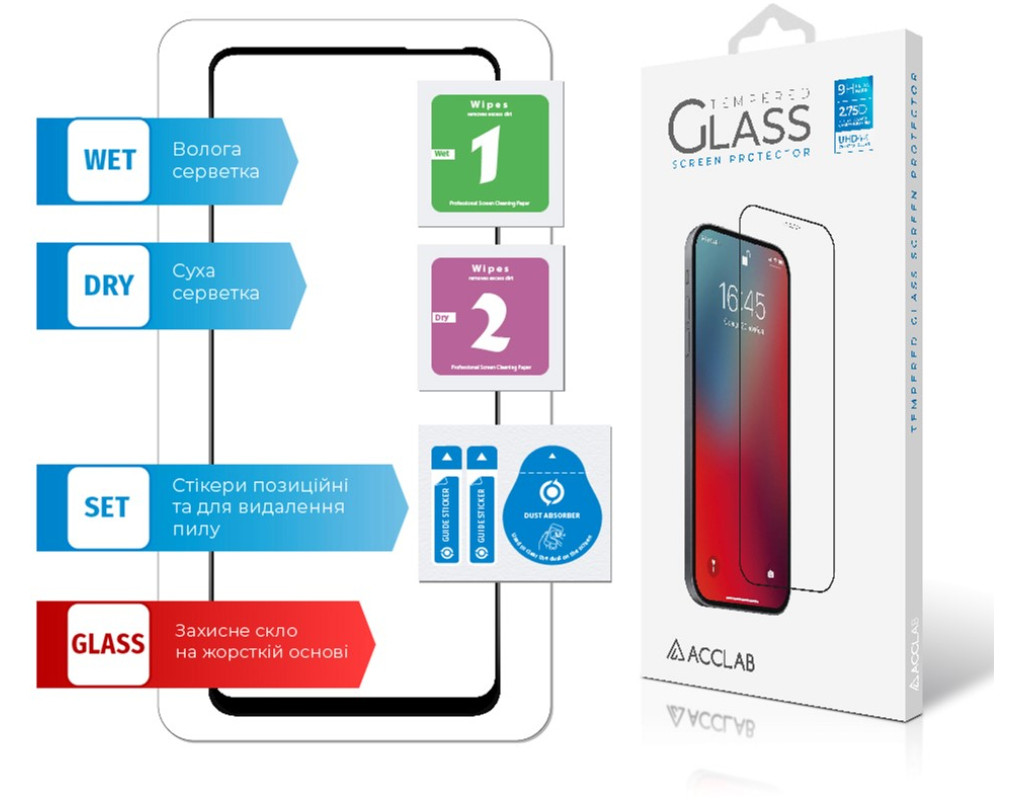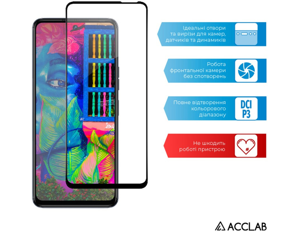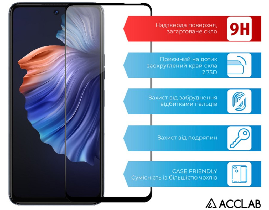 - Рівень міцності: 9H. Мінімізує ризик пошкодження передньої панелі мобільного пристрою під час повсякденного використання.