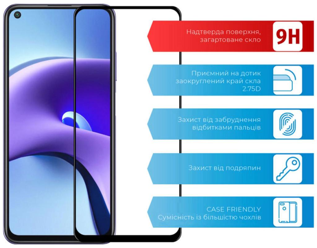 - Рівень міцності: 9H. Мінімізує ризик пошкодження передньої панелі мобільного пристрою під час повсякденного використання.