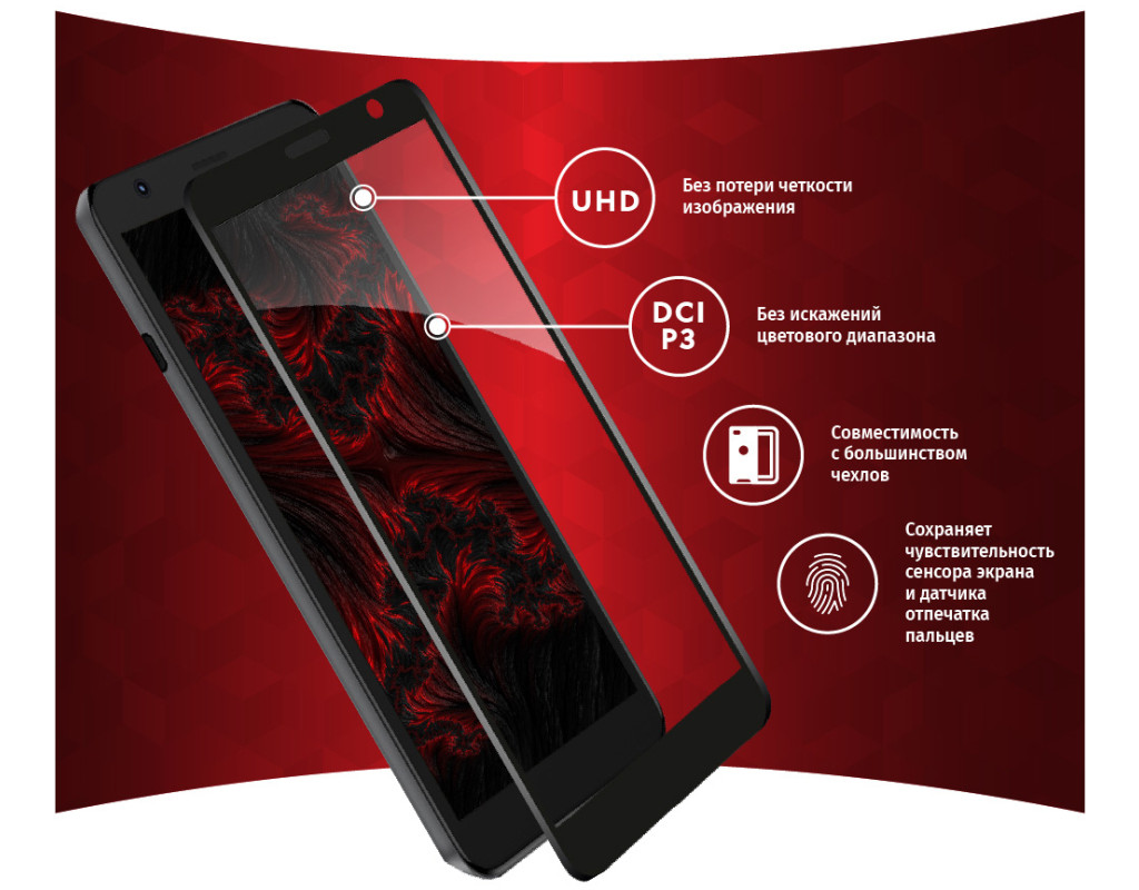 • Повний захист. Захищає всю передню панель пристрою, від краю до краю, не залишаючи помітних люзів.