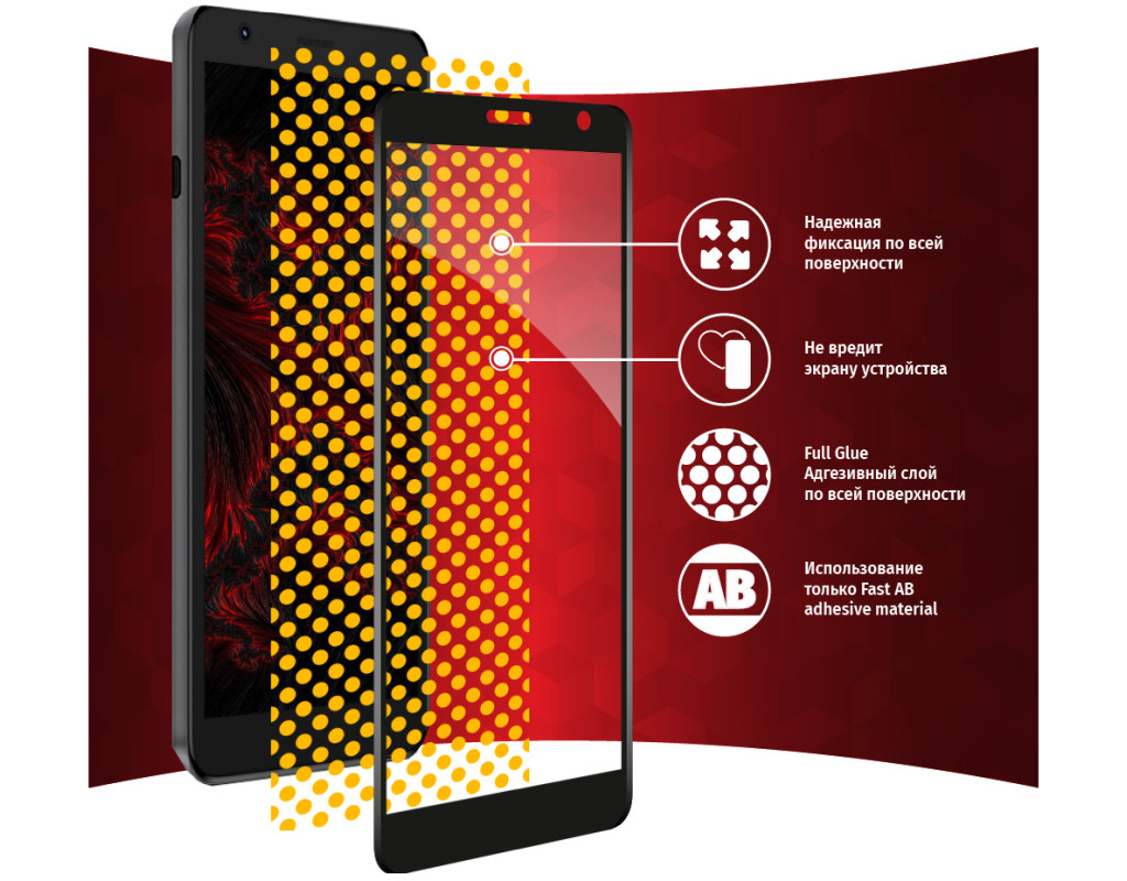 Захисне загартоване скло Full Glue — один із найкращих засобів для захисту не тільки екрана, але і всієї передньої панелі мобільного пристрою, від краю до краю. Воно повністю повторює розміри та форму передньої панелі смартфона навіть з заокругленими краями, краї скла повторюють колір передньої панелі, тому скло майже невидиме для ока. Забезпечує максимальний захист від пилу та вологи, не залишаючи помітних прозорів, повітряних бульбашок або слідів клейового шару на екрані. Скло надійно оберігає від ударів або падінь.