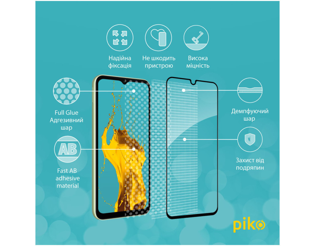 - Клейовий шар нанесений на всьому склі. Завдяки цьому забезпечує надійну та сильну фіксацію всього скла, а не лише його країв. За необхідності таке скло легко зняти без ризику пошкодити екран або його покриття.
