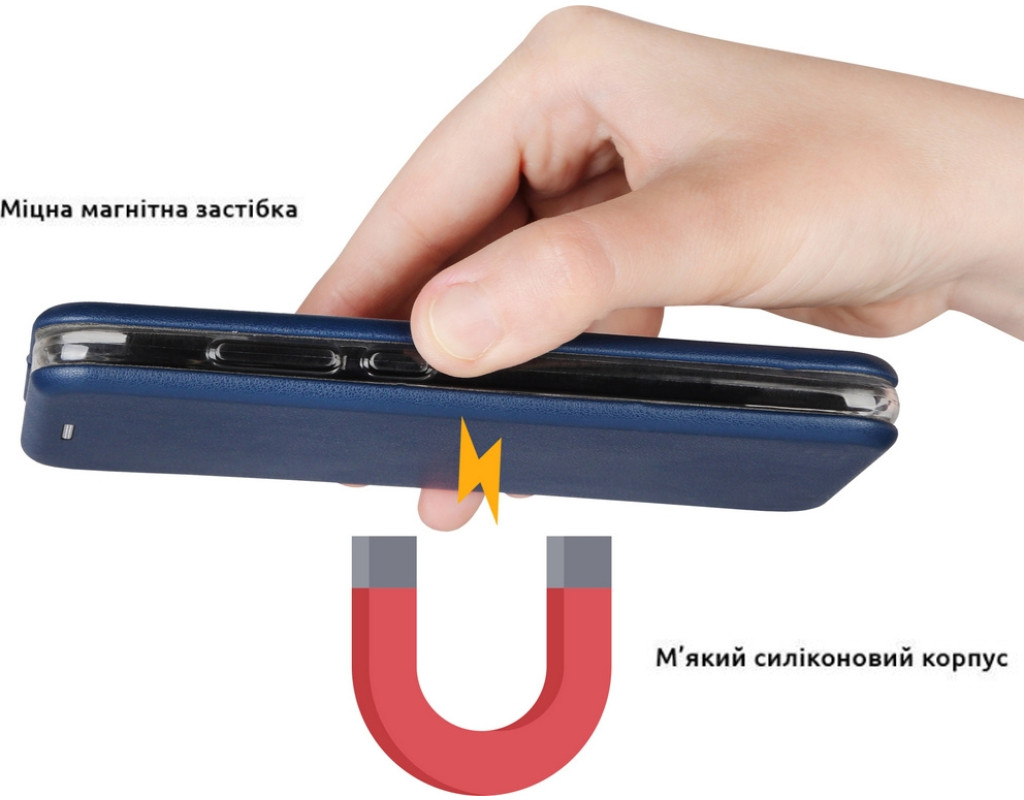 сумісність з моделями - Samsung Galaxy A24, Тип чохла для телефону - книжка, Призначення - модельний, Матеріал - поліуретан, Колір - темно-синій