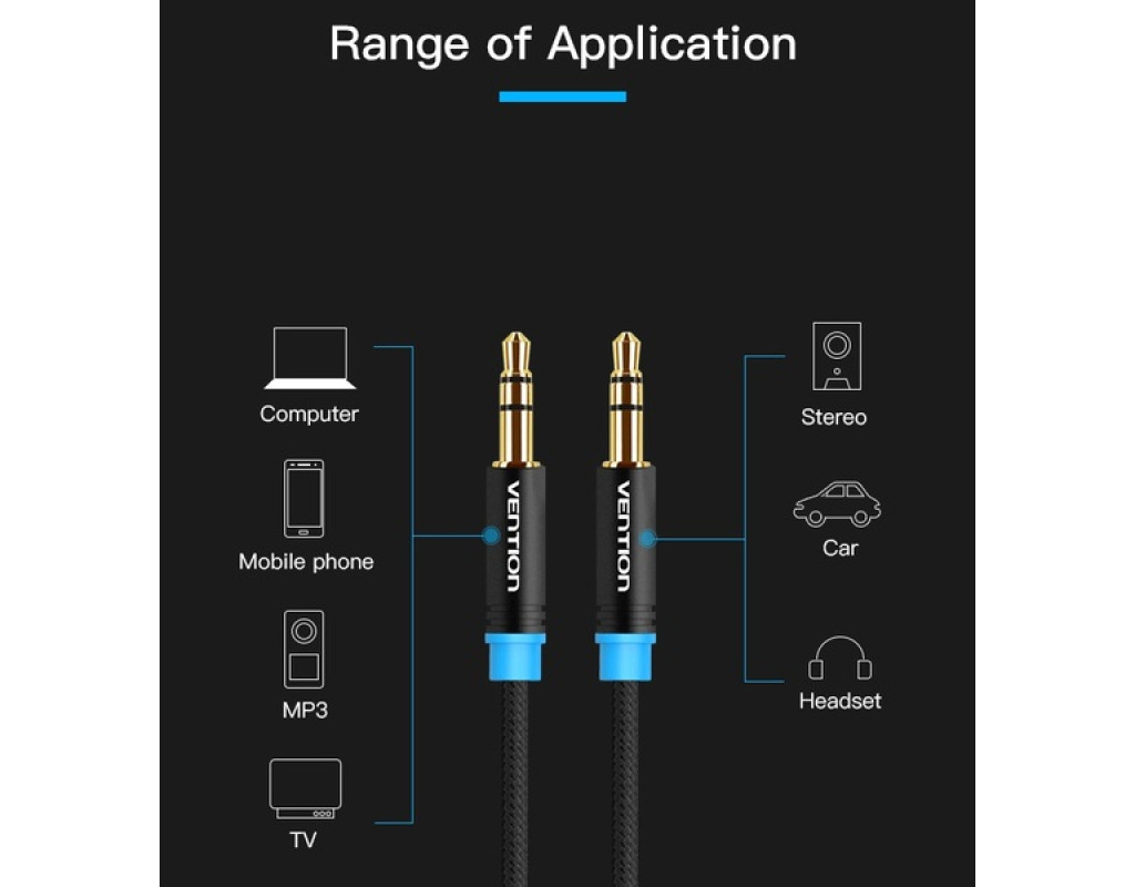 | Кабель Vention Audio 3.5 mm M - 3.5 mm M призначений для передачі аналогових стереозвуковых сигналів між аудіо, аудіо-відео і (чи) комп'ютерними пристроями або їх компонентами.
