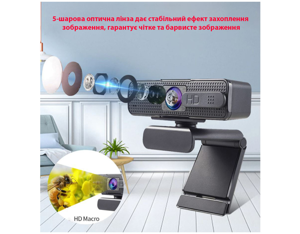 Кількість пікселів - 5 МП, Роздільна здатність відео - FullHD (1920x1080), Частота кадрів на секунду - 30, фокусування - автофокус, інтерфейс - USB 2.0, Сумісність ОС - Windows 7, Windows Vista, Windows 8, Mac OS X, Linux Ubuntu, довжина кабеля - 1.6 м, мікрофон - вбудований мікрофон