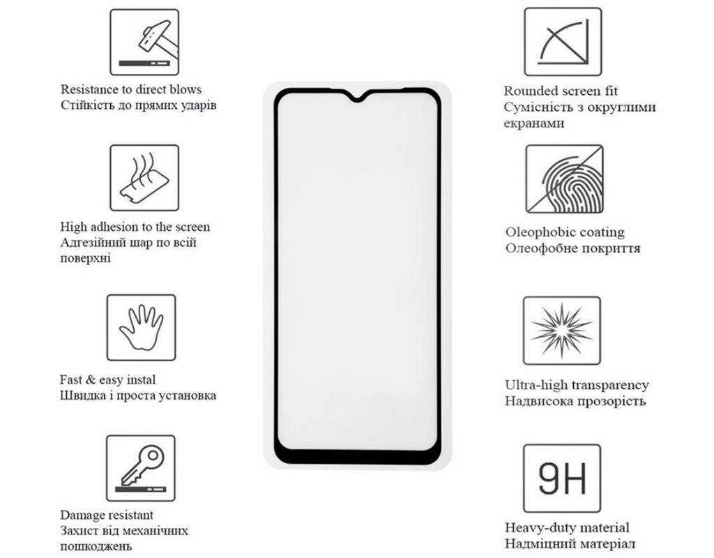Захисне скло Drobak Full Glue – це ефективне рішення для захисту екрану вашого смартфона від подряпин, тріщин та сколів, виготовлене із загартованого скла, досить міцне, щоб захистити екран телефону при падінні на асфальт, при побутових ударах, при взаємодії з предметами, що дряпають (ключі, пісок, лезо ножа, цвяхи). У той же час, захисне скло Drobak Full Glue досить тонке та практично непомітне на екрані.