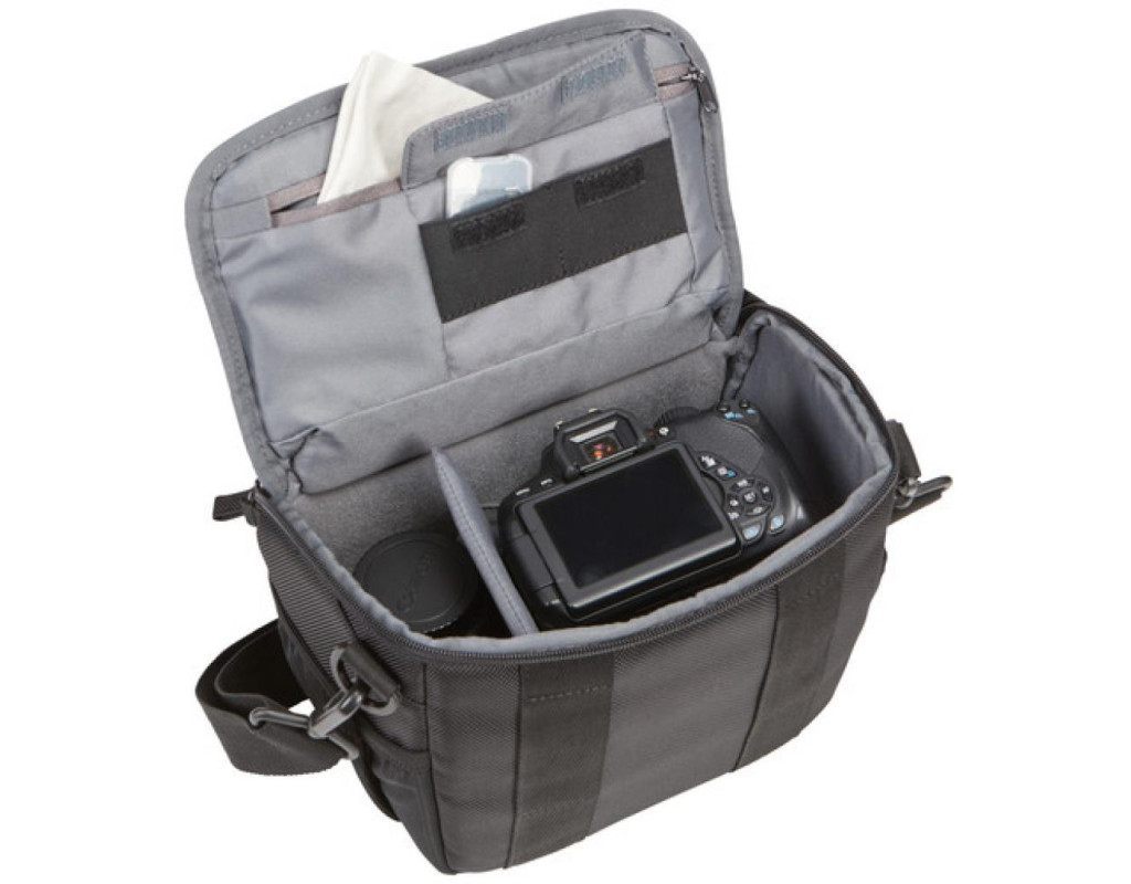Компактна наплічна сумка, розроблена для захисту цифрового дзеркального фотоапарата та невеликих аксесуарів.
