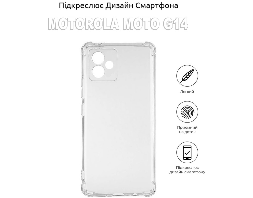 сумісність з моделями - Motorola G14, Тип чохла для телефону - накладка, Призначення - модельний, Колір - прозорий