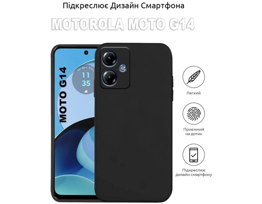 сумісність з моделями - Motorola G14, Тип чохла для телефону - накладка, Призначення - модельний, Колір - чорний