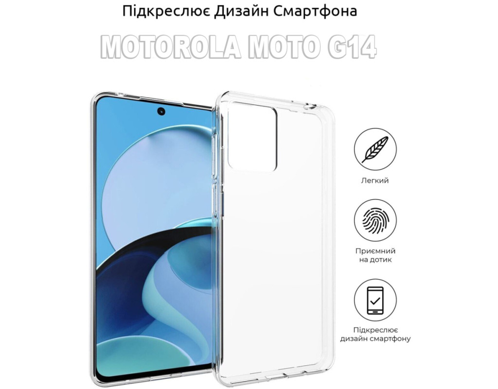 сумісність з моделями - Motorola G14, Тип чохла для телефону - накладка, Призначення - модельний, Колір - прозорий